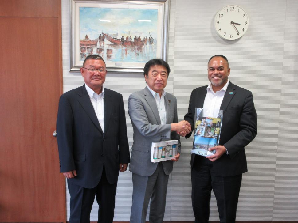 フィジー共和国大分名誉領事館の開設に伴い、駐日フィジー共和国特命全権大使フィリモネ・ワガバザ氏が足立市長を表敬訪問され、今後の交流等に向けた意見交換を行いました。