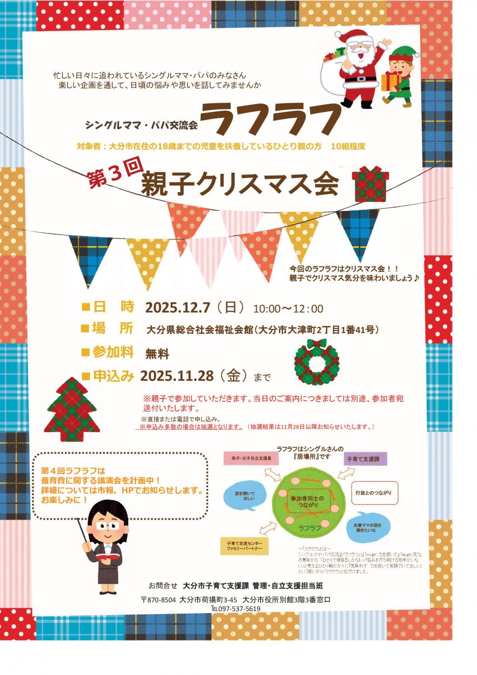 大分市在住で18歳までの児童を扶養しているひとり親家庭の親子7組程度