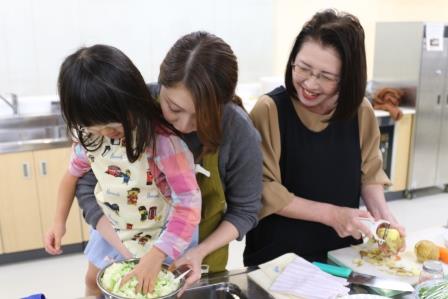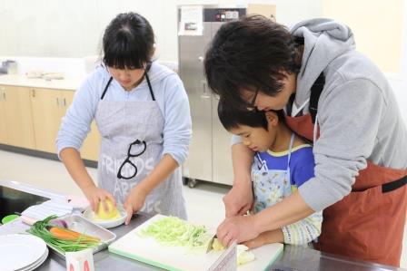 皆さん講師に質問しながら手際よく調理をすすめます。子どもたちも頑張りました!