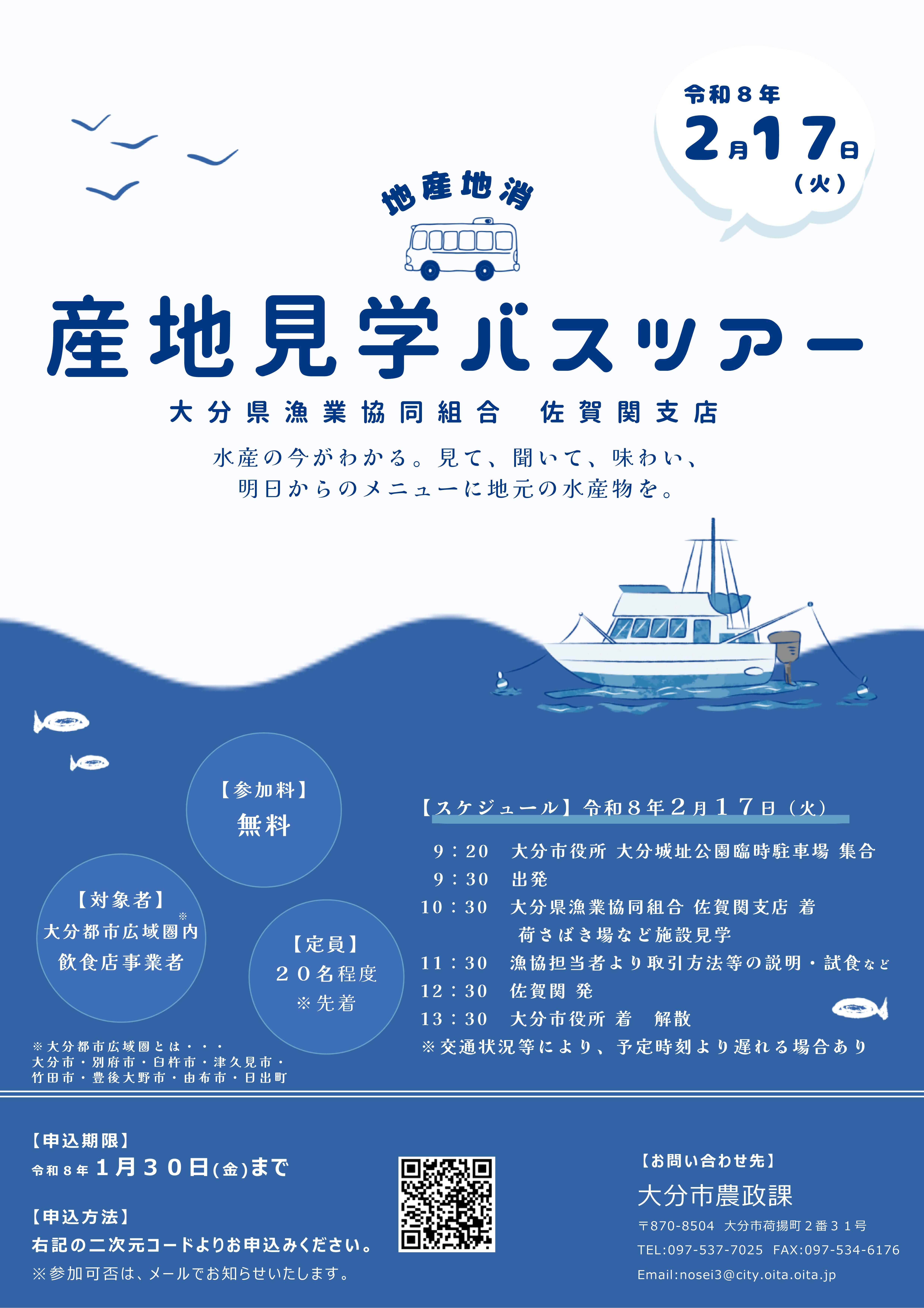 その一環として、地元農林水産物の理解促進と消費拡大を目的に、「地産地消 産地見学バスツアー」を行います。
