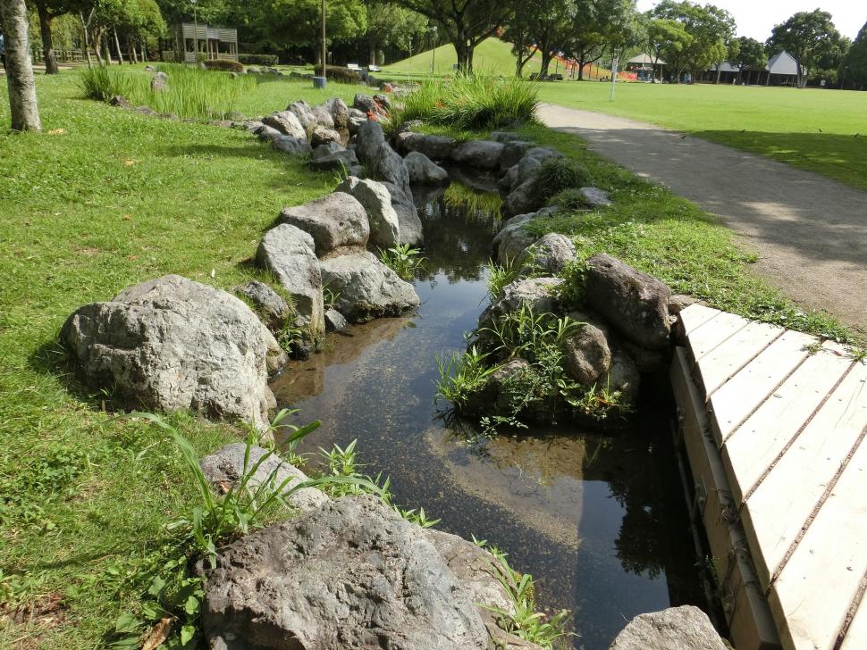 芝生広場を囲むように流れている、全長約300メートルの水路です。