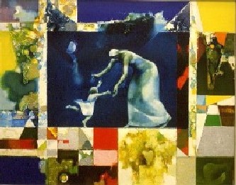 右上の作品 廣瀨通秀《モニュメント》1980(昭和55)年 181.8×227.3(cm) 油彩、キャンバス 第44回独立展出品作
